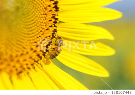 夏の花ひまわりとミツバチ