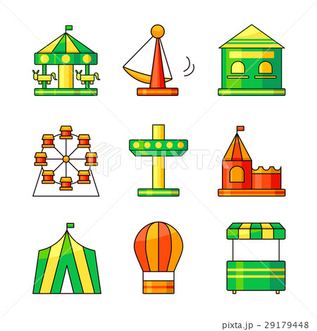 Amusement park map. Scheme elements attractions festival amuse funfair leisure family fairground kid
