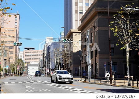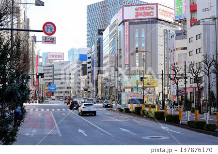 東京 千代田区 神田駿河台の都市風景 明大通り沿いの楽器店街