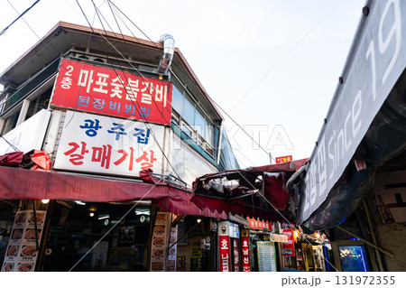 楽園楽器商街の屋台ゾーン 路地裏 春晴れの青空 韓国ソウル