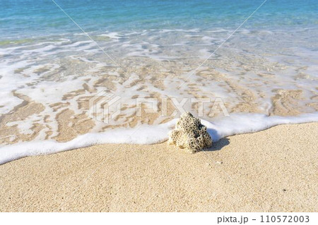 ブセナ海中公園の白い砂浜と青い海 流れ着いたサンゴ 沖縄県名護市