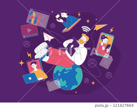 世界とつながる男性のイメージイラスト