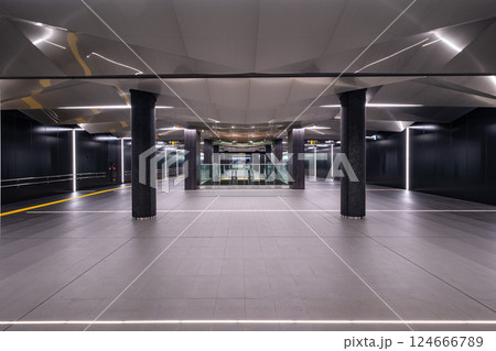 東京都市風景 誰もいない都心の地下連絡通路(JR八丁堀駅構内)