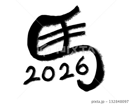 背景透過の筆文字「馬」と西暦2026の干支年賀イラスト|馬,筆文字,2026,干支,背景透過,年賀状