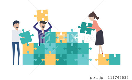 抜群のチームワークで効率よくパズルを組み立てるビジネスチーム