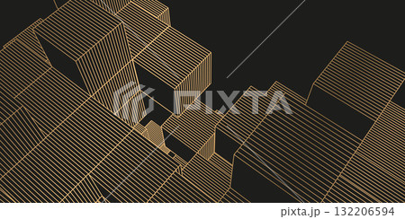 Abstract black background from cubes and lines. Linear geometric drawing. Vector illustration.