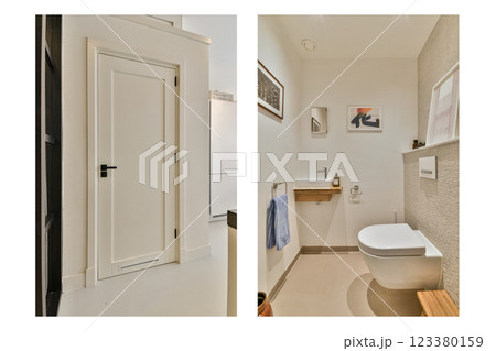 A sleek and elegant bathroom layout showcasing a mix of contemporary elements and functional design. The space features clean lines and a harmonious color palette.