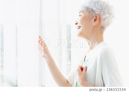 朝の窓辺で過ごすシニア女性