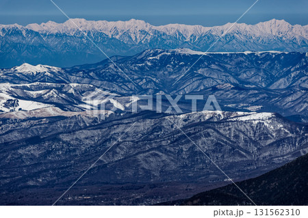 冬の八ヶ岳連峰・横岳から見る剱・立山連峰と後立山連峰