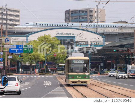 横川駅に停車する路面電車の景色