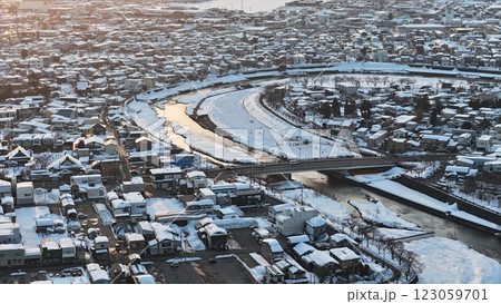 秋田県横手市の横手城址から眺望する横手川周辺景色