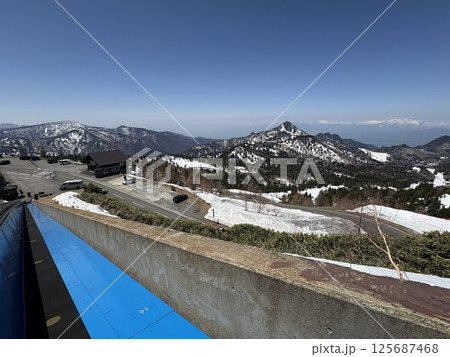 長野県下高井郡山ノ内町の浅間白根志賀さわやか街道沿いの横手山・渋峠にあるスカイレーター付近の景色