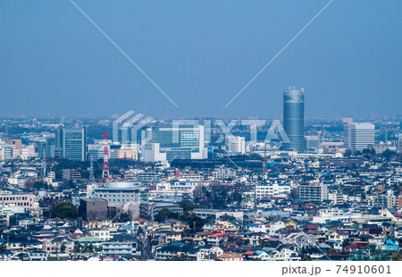 日本の横浜都市景観 新横浜駅や横浜プリンスホテルなどを望む