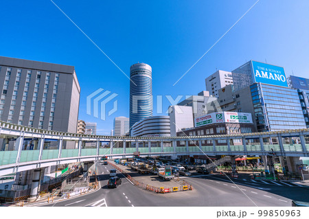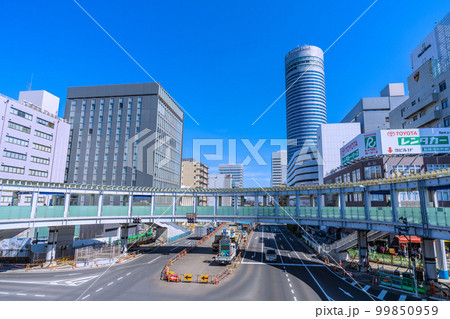 日本の横浜都市景観 新横浜駅前の相鉄・東急直通線新横浜駅工事などを望む