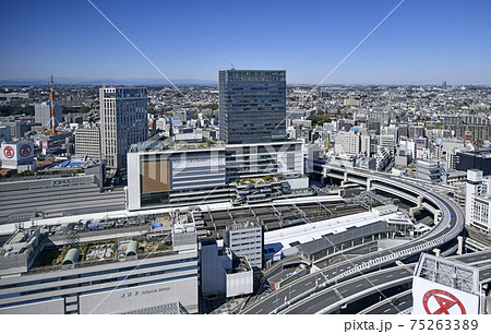 日本の横浜都市景観 新生「横浜駅」などを望む。画面右は新横浜方面など
