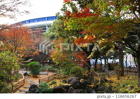 横浜市 横浜公園の彼我庭園正門と紅葉
