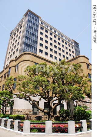 日本の横浜都市景観 みなとみらい線の日本大通り駅(出入口)や横浜地方検察庁などを望む