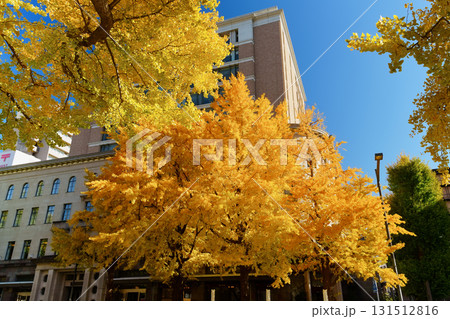 紅葉シーズンの横浜・日本大通りのイチョウ並木