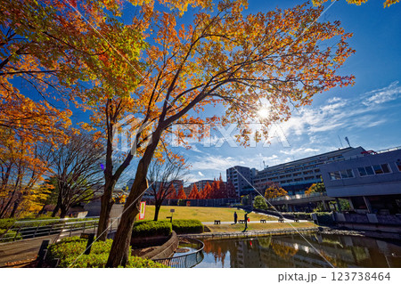 港北ニュータウン・ささぶねの道の紅葉の風景