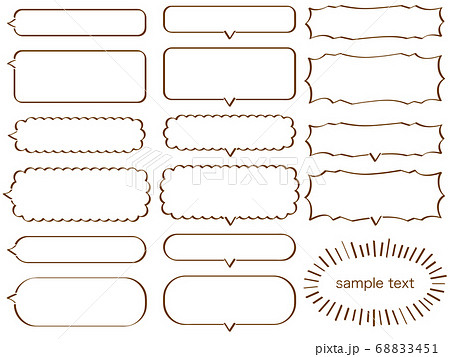手書きの横長のかわいい吹き出しセット 茶色のマーカー線画