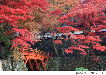 岐阜県揖斐川町 横蔵寺の寺門と鮮やかな紅葉