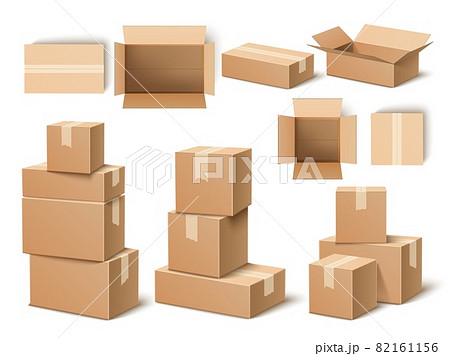 Set of cardboard boxes for parcels, goods and products, vector illustration.