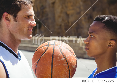 Close up of male teenager with basketball