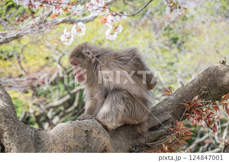 木の上にすわるニホンザル 嵐山モンキーパークいわたやま