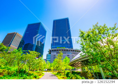 日本の横浜都市景観 緑と白が映えるハクウンボク(白雲木)…。花言葉は壮大、愛の旅、朗らかな人=30日