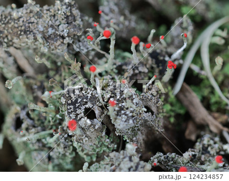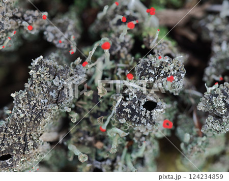 地衣類 ハナゴケ科コアカミゴケの赤い子器