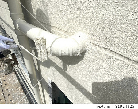 モルタル壁に白色(クリーム色)で上塗り塗装
