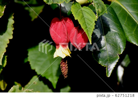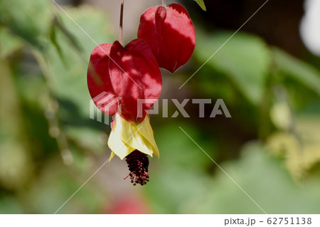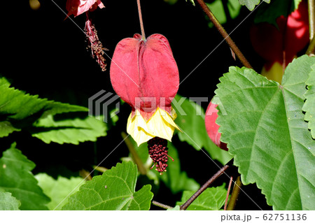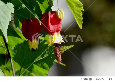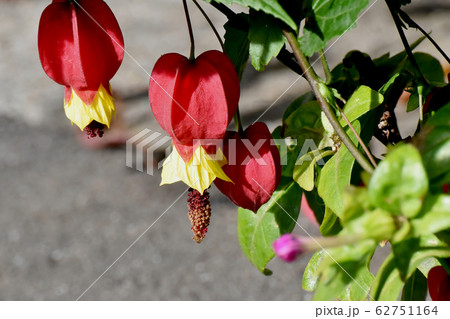 三鷹中原に咲く赤と黄色のチロリアンランプ (アブチロン) の花