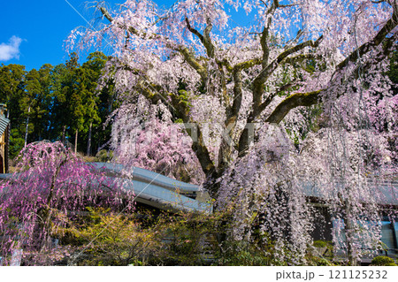 山梨県身延町久遠寺の桜 報恩閣前の樹齢400年の枝垂れ桜