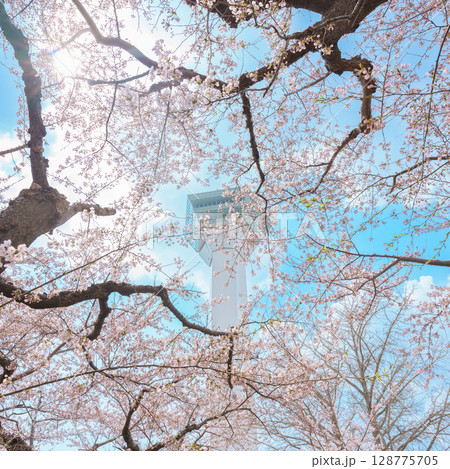 Beautiful Sakura Cherry Blossom in Spring season. Goryokaku Tower park in Hakodate city, Hokkaido prefecture, Japan. famous Landmark, Japan Travel and Vacation destination