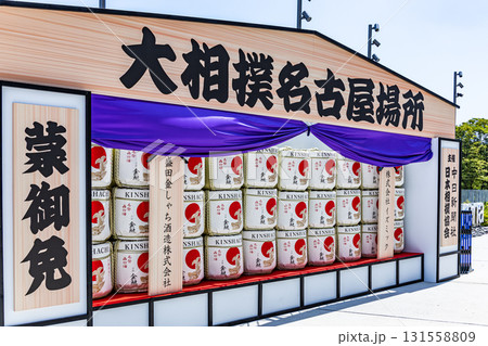京都府長岡京市にある長岡天満宮の酒樽奉献舎に並べられた飾り樽