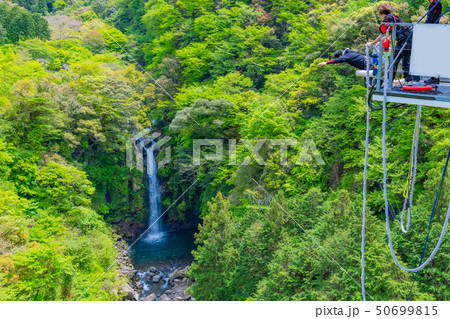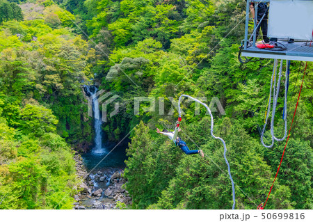 静岡県富士市 須津川渓谷のバンジージャンプ 春 新緑