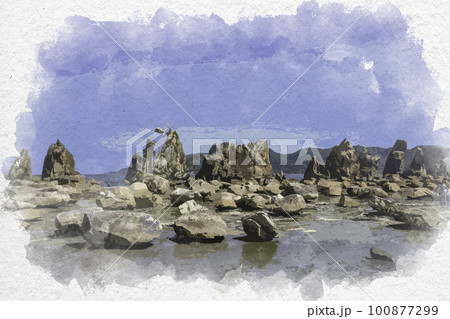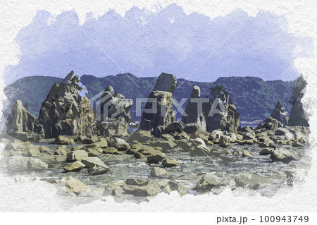 水彩画風 串本 橋杭岩 和歌山県串本町