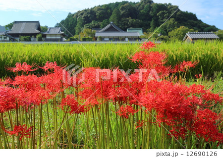 橘寺 彼岸花と田園風景