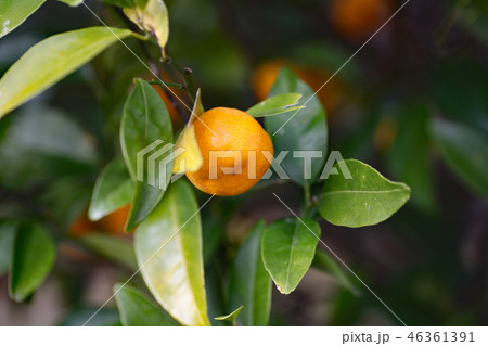 黄色く熟したタチバナ 橘寺の橘の木 奈良の観光名所