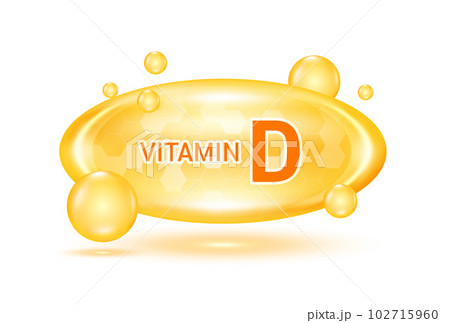 Vitamin D and minerals complex set. Glossy vitamins pills capsules orange. Pill, Healthy food supplement. Medical scientific and healthcare concept. Isolated on white background 3D Vector EPS10.
