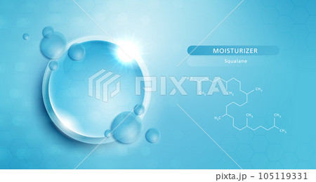 Moisture and refreshing vitamin E skincare product ads with watery water to moisturize the face. bottle and realistic package mockup. banner ad for beauty products and blue background. cosmetic vector