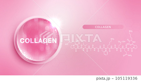 Drop water collagen pink and structure. vitamin solution complex with chemical formula from nature. beauty treatment nutrition skin care design. medical and scientific concepts for cosmetic. vector.