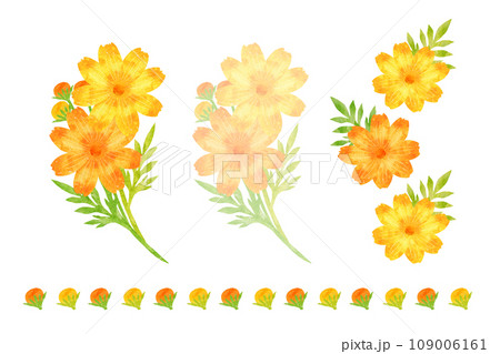 マリーゴールドの花の装飾セット 水彩イラスト素材