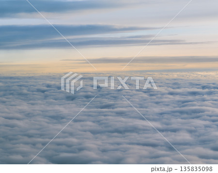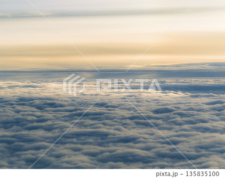上空の雲海と夕空 空撮