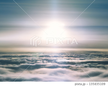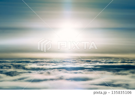 上空の雲海と太陽 空撮