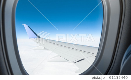 飛行機内の窓と空