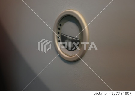 シートが収納された飛行機の窓