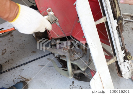 農機具の整備 ― 稲刈り機のメンテナンス作業