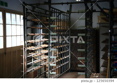 秩父銘仙館の整経場 秩父銘仙館の整経機