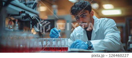 Scientist Writing Notes in a Laboratory with Glassware and Equipment